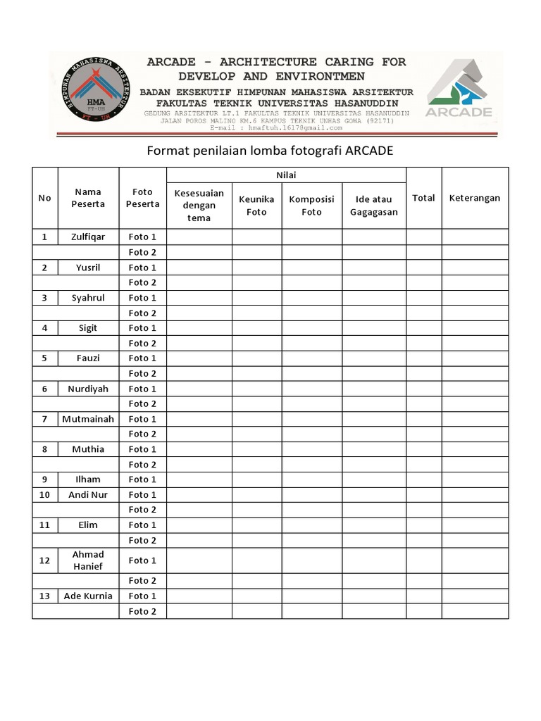 Form Penilaian Lomba Adzan Free download as Word Doc doc docx PDF File pdf Text File txt or read online for free Contoh lembar penilaian lomba adzan