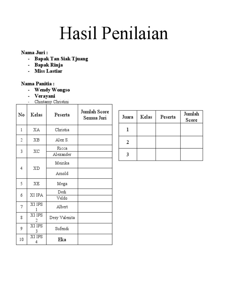 Daftar Penilaian Lomba Melukis Sumber : www.scribd.com
