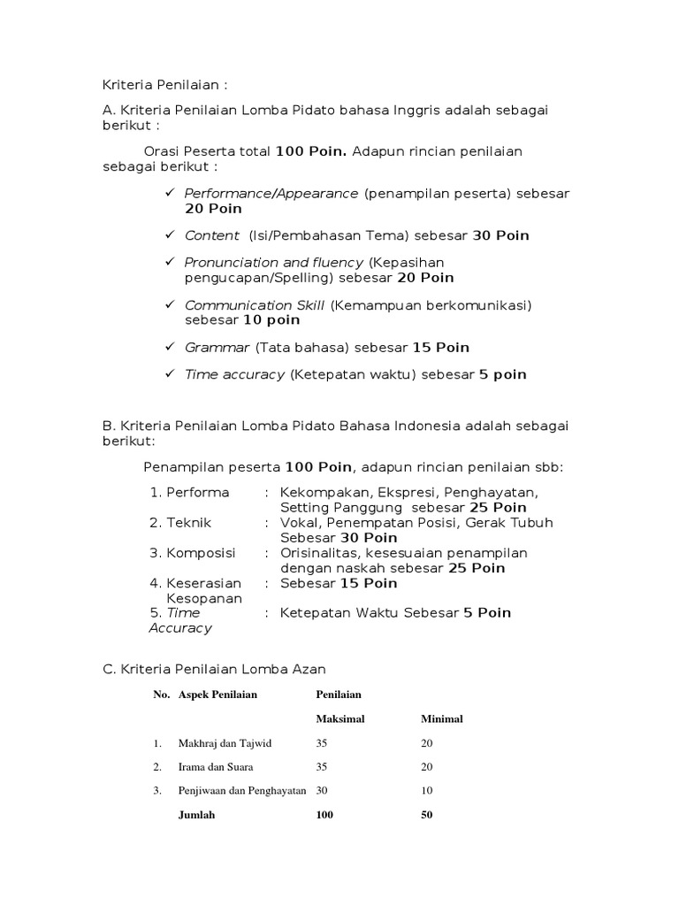 Kriteria Penilaian Lomba doc Sumber : id.scribd.com
