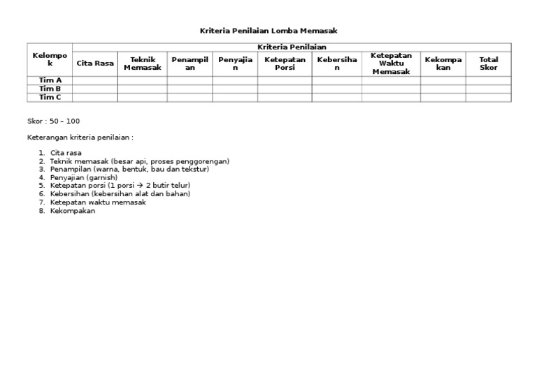 Kriteria Penilaian Lomba Memasak Sumber : www.scribd.com