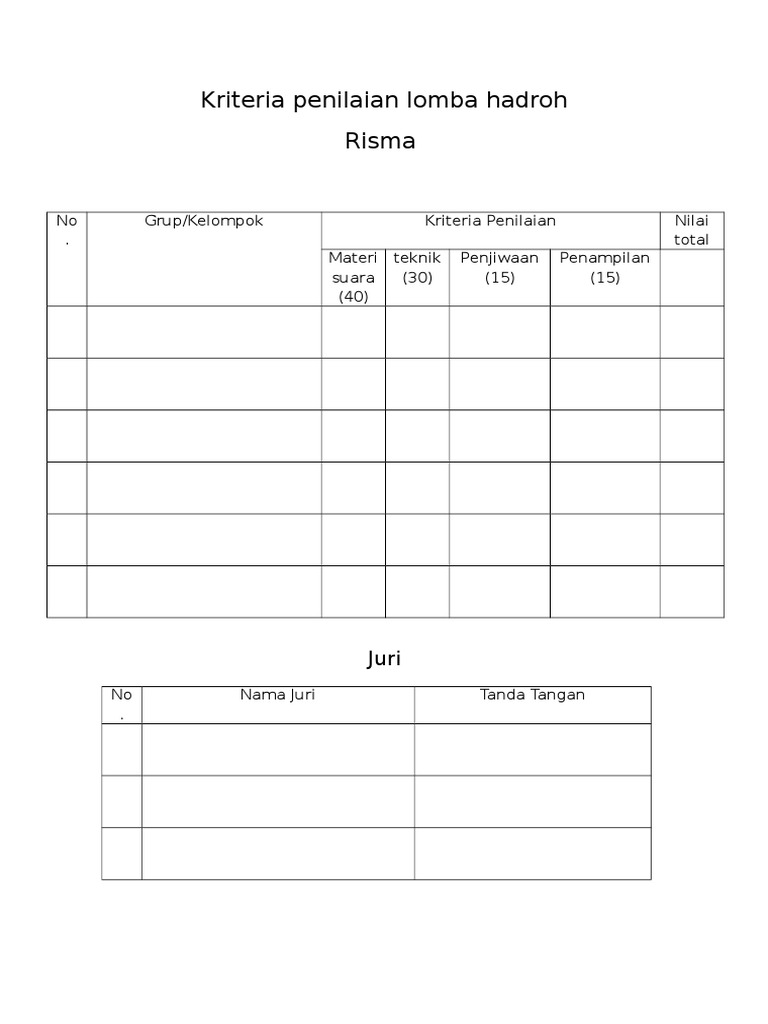 Kriteria Penilaian Lomba Hadroh Sumber : www.scribd.com