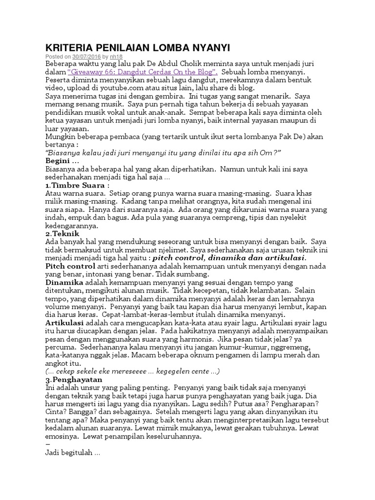 Kriteria Penilaian Lomba Nyanyi Sumber : www.scribd.com